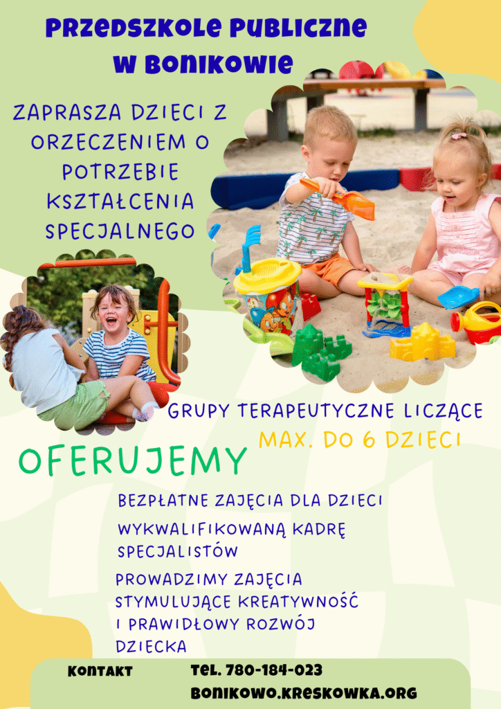 Od 1 września 2025 roku w Bonikowie działa nowe publiczne przedszkole artystyczno-przyrodnicze „Kreskówka”. W placówce znajdują się oddziały dla dzieci w wieku 2,5-, 3-, 4-, 5- oraz 6 lat.